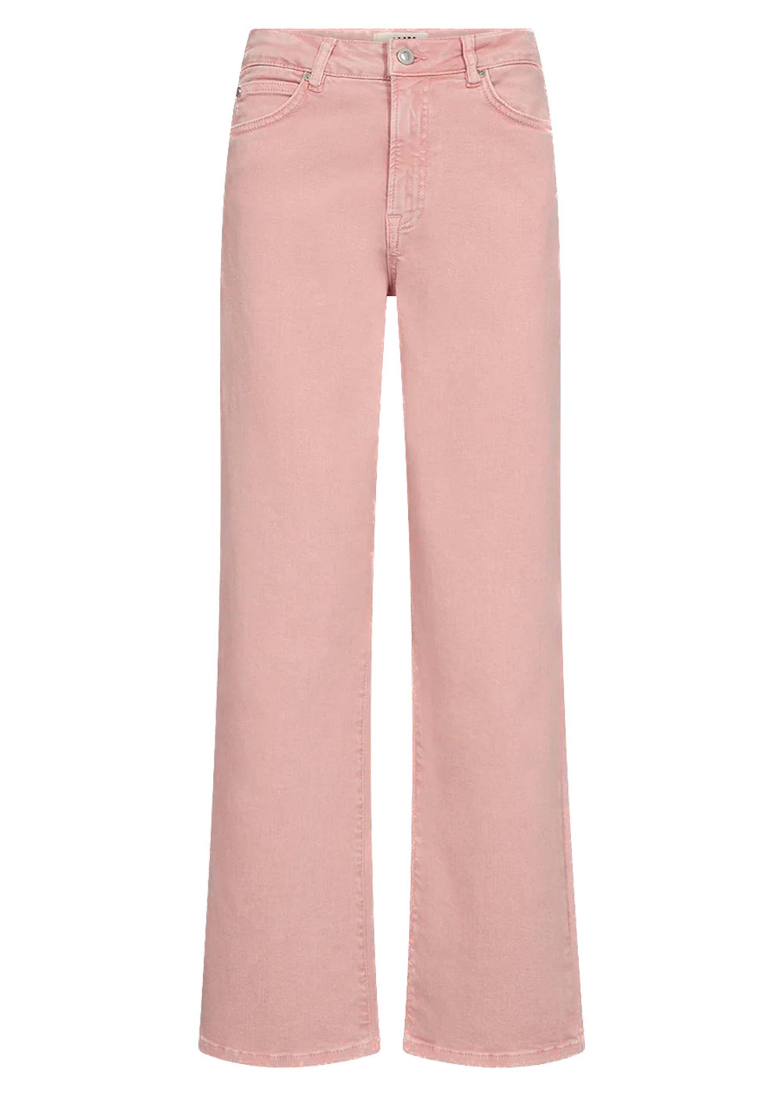 The IVY-Mia Jeans from IVY Copenhagen are a pair of modern high-waist jeans with slightly flared legs and a feminine look. They are made in a soft and stretchy quality of cotton, recycled polyester and elastane for all-day comfort and flexibility. The delicate Rose Blossom colour adds a fresh and elegant touch to your wardrobe, perfect for spring and summer.
