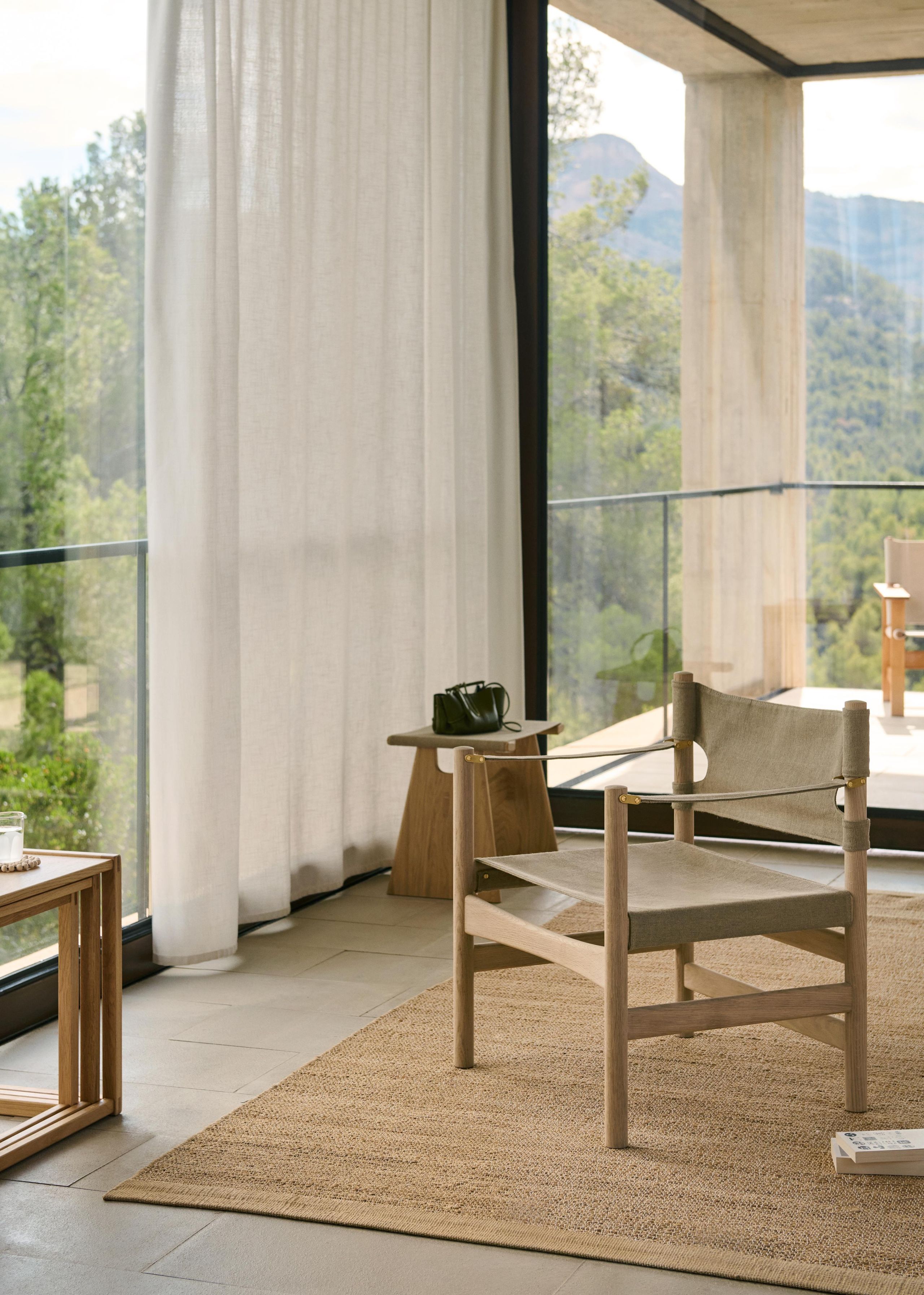The Canvas 21 chair from Fredericia Furniture represents the pinnacle of Scandinavian design. Created by Børge Mogensen in 1968, this iconic lounge chair combines artisanal finesse with timeless aesthetics. Made from FSC-certified solid wood and upholstered in 100% linen canvas, every detail, including the solid brass fittings, is a testament to quality that ages with beauty.
